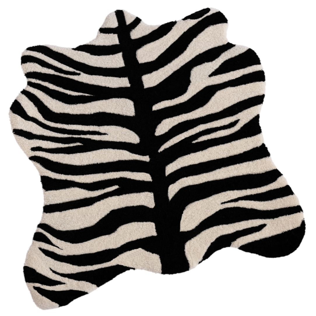 Made from 100% premium ethically sourced wool, this striking zebra-patterned rug is hand-tufted with care. Every rug is a bit different, and has an edgy character of its own.