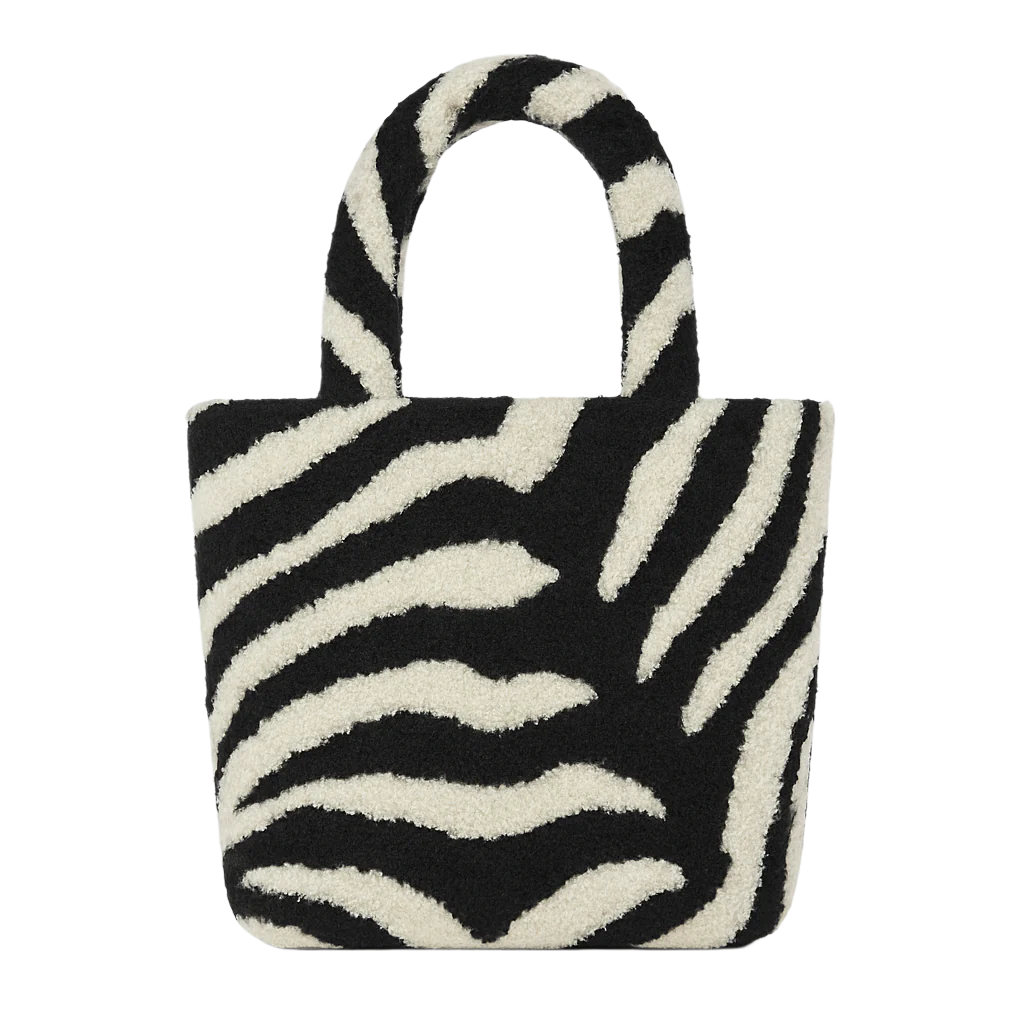 Made from 100% premium ethically sourced wool, this striking zebra-patterned tote bag is hand-tufted with care. Every bag is a bit different, and rebellious.